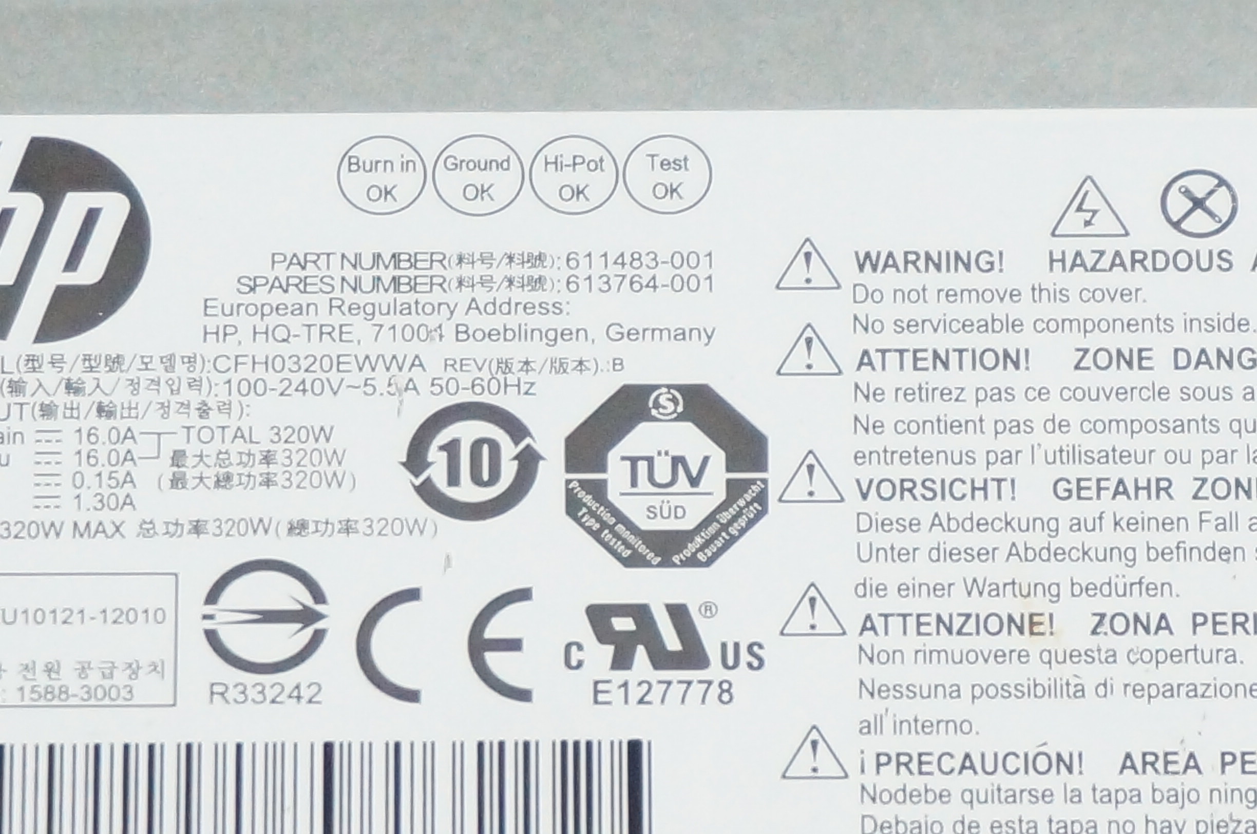 HP 6200 Pro 320W Power Supply